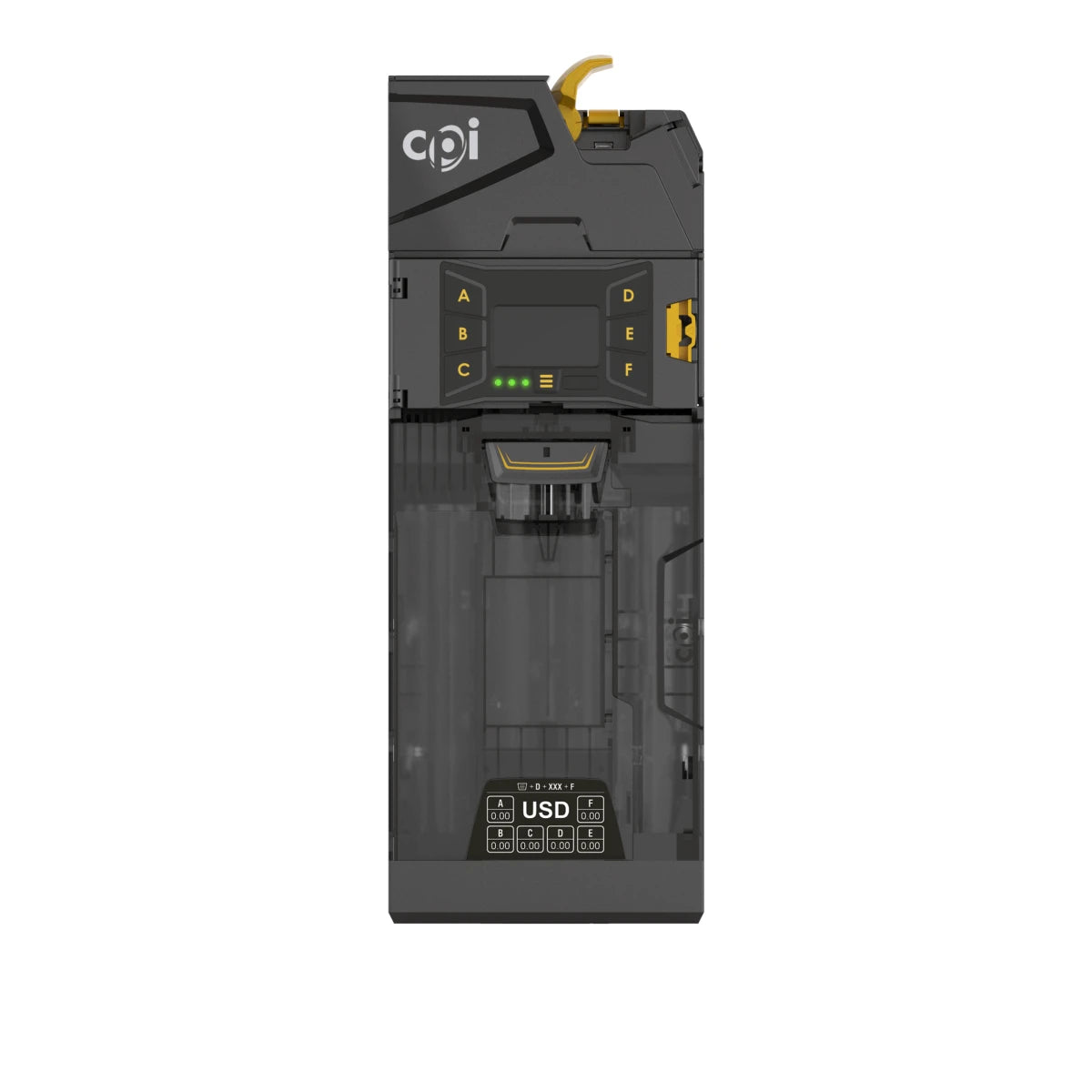 Der CPI Gryphon Münzwechsler bietet eine speziell abgestimmte Tubenkonfiguration, die ideal auf die Anforderungen von Snackautomaten zugeschnitten ist. Mit seiner präzisen Münzverarbeitung und robusten Bauweise garantiert er eine zuverlässige Funktionalität und sorgt für ein optimales Nutzererlebnis.